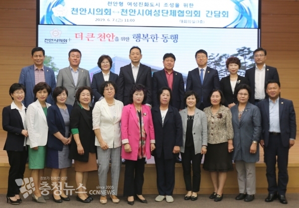 천안시의회(의장 인치견)는 7일(금) 천안시청 대회의실에서 천안시여성단체협의회(회장 임상선)와 간담회를 통해 여성의 권익 향상과 여성단체 발전 방안에 대해 논의했다.