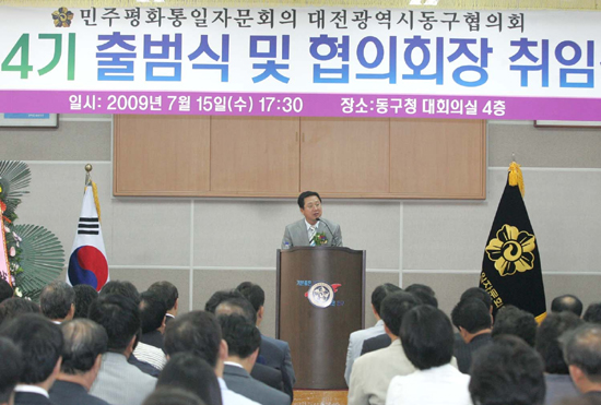민주평화통일자문회의 대전동구협의회 14기 출범식 및 협의회장 취임식이 15일 동구청 대회의실에서 최청락 신임 동구협의회장, 임기평 전임 동구협의회장과 이장우 동구청장을 비롯한 자문위원, 초청인사 등 100여명이 참석한 가운데 개최됐다.