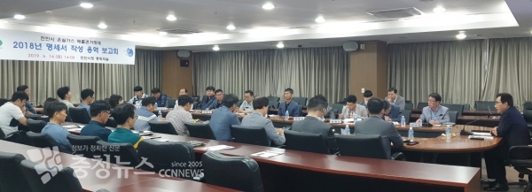 시는 14일 시청 중회의실에서 관계공무원, 할당시설 담당자, 자문위원 등 30여명이 참석한 가운데 ‘천안시 온실가스 배출권거래제 2018년 명세서 작성용역 최종보고회’를 개최했다.