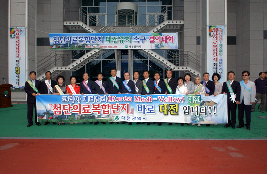 대전시는 28일 오전 박성효 시장을 비롯한 지역 정·재계, 시민·사회단체 등 300 여명이 참석한 가운데 시청 북문광장에서 ‘첨단의료복합단지 대전유치 촉구 결의대회’를 갖고 상경, 서울 주요 지역에서 가두 캠페인을 전개했다.
