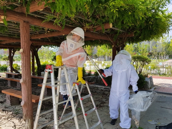 이종하 계룡소방서장은 “보호장비 없이 무리하게 벌집을 제거하는 것은 자칫하면 생명을 위협할 수 있다”며 “위험한 벌집을 발견한다면 직접 제거하려 하지말고 주저없이 119에 신고해달라” 고 전했다.