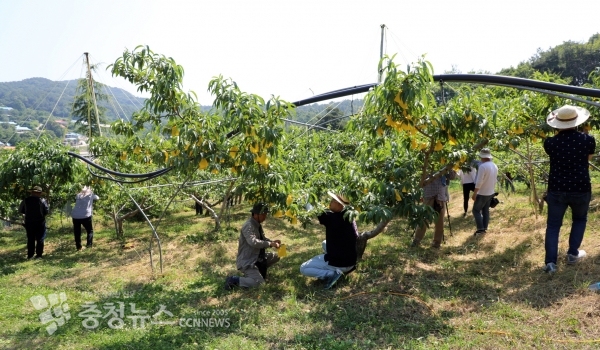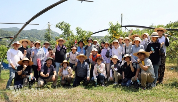 세종시의회(의장 서금택) 의원 및 사무처 직원 30여명은 24일 전의면 다방리의 한 농가를 찾아 복숭아 봉지 씌우기 봉사활동을 실시했다.