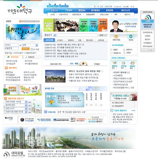 대전시 대덕구(구청장 정용기)는 31일 구청 중회의실에서 구 홈페이지 웹 접근성 강화 및 행정포털시스템 구축사업 완료에 따른 보고회를 갖는다.