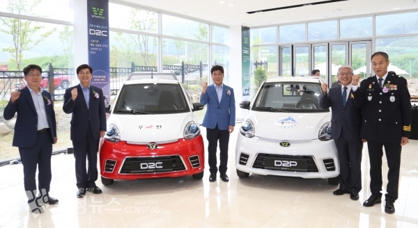이날 기존 승용차의 장점과 화물적재의 편리함을 더한 초소형전기화물 픽업 D2P도 공개되었다.