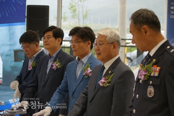 GS 엠비즈㈜ 오토오아시스 대표자, 이순종 쎄미시스코 대표, 이춘희 세종시장, 서금택 세종시의장, 박희용 세종지방경찰청장