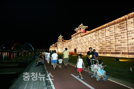 길이만 200여m에 달하고 높이도 20여m로 국내에서는 최대의 규모를 자랑하는 세트로 야간 갑천 둔치에서 운동을 하거나 가족단위로 무더위를 피해 찾은 시민들에게 새로운 볼거리를 제공하고 있다.