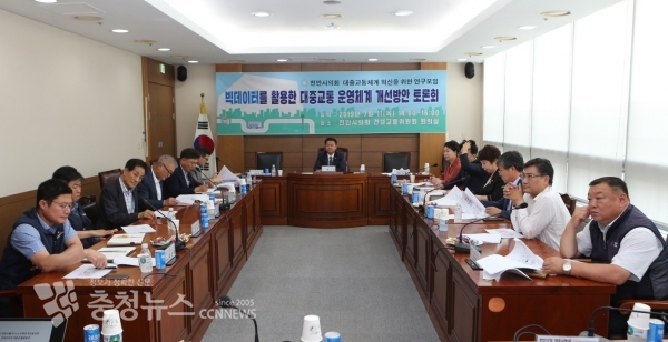 천안시의회(의장 인치견) 의원들로 구성된 ‘대중교통체계 혁신을 위한 연구모임’(정병인의원, 권오중의원, 김길자의원, 김행금의원)은 11일 천안시의회 건설교통위원회 회의실에서 ‘대중교통체계 혁신 정책토론회’를 개최했다.