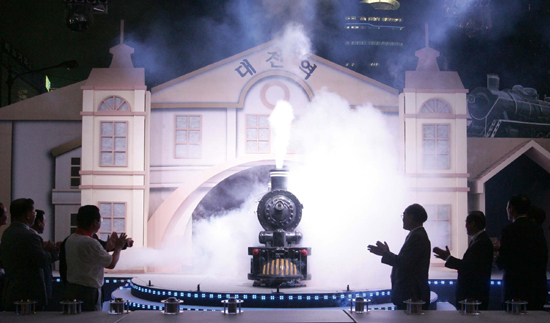 또 증기기관차가 기적소리와 함께 무대 위로 등장하는 대전발 0시 기차 멀티미디어쇼는 최첨단 레이저와 서치 조명, 불꽃놀이를 통한 화려하고도 이색적인 무대로 관람객들의 환호를 받았다.