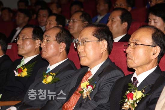 ▲ 유환식 연기군수, 심대평 대표 이준원 공주시장