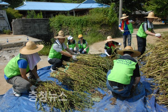▲ 충남경찰청 정보과는 인삼골 건강마을을 방문해 봉사활동을 펼친 것을 계기로 매년 봉사활동을 펼치고 있음