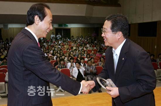 학부모 400여명이 참석한 교육정보서비스 학부모 연수회 자리에서 마련된 이번 감사패 전달은 학교체육시설 현대화사업, 열린교정 푸른숲 조성사업 등 지역 교육발전을 위해 학교 환경개선에 앞장선데 따른 것이다.