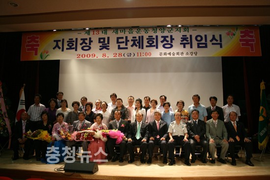 새마을운동청양군지회는 지난 28일 청양문예회관에서 새마을지도자 300여명과 각급 기관단체장이 참석한 가운데 제13대 새마을운동청양군지회장으로 이기열씨를 선출하고  회원단체장 취임식을 가졌다.