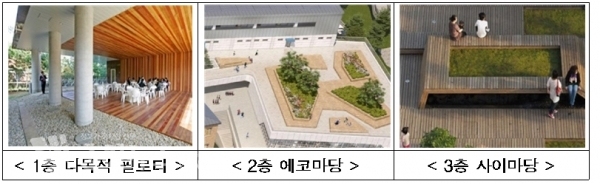 그리고, 학생들이 한곳에 모이게 되는 강당, 도서관, 시청각실, 식당 등은 중학교와 고등학교 사이 중앙에 설치해 활용도를 높인다.