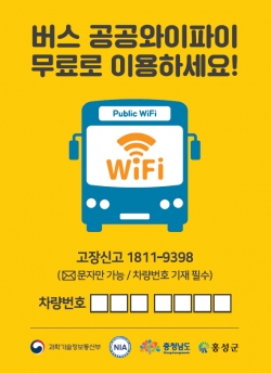 군 관계자는 “홍성군을 방문하시는 관광객 및 버스를 이용하시는 주민들의 무선인터넷 환경개선을 위해 공공와이파이 구역을 지속적으로 확대해 나갈 수 있도록 노력하겠다.”고 말했다.