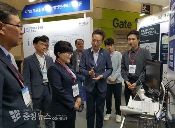 김진숙 행정중심복합도시건설청장은 9일 서울 코엑스에서 열린 ‘2019 스마트 국토엑스포’ 전시장을 방문하여 디지털 트윈, 지하시설물 탐사 등 공간정보와 연결된 국내외 신기술 현황 등을 청취하였다.