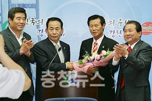 또 "이제 행복한 불의보다는 고통스러운 정도를 걷고자 한다"며 "남은 임기 충청의 정서를 가장 잘 반영하는 자유선진당과 함께 충청과 국가 발전을 위해 최선을 다하겠다"고 말했다.