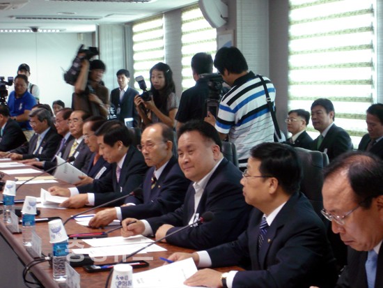 이들은 정부의 행복도시축소 움직임을 경고하며 이번 정기국회에서 선진당과 공조해 특별법 개정 처리하겠다고 약속했다.