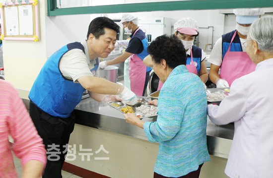 한나라당 대전시당 푸른봉사단(단장 조은숙)은 소통과 나눔, 섬김을 실천하기 위해 10일(목), 동구 가양동에 위치한 동구노인종합복지관에서 주요당직자들과 함께 봉사활동을 실시하였다.