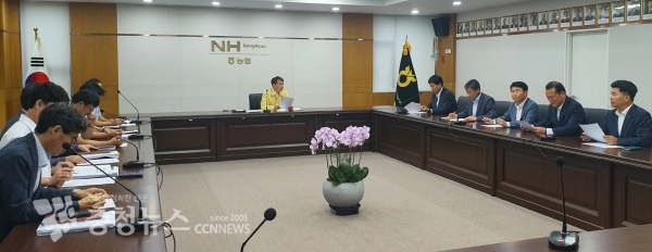 조소형 농협 충남지역본부장은 5일 “북상하는 제13호 태풍 ‘링링’대비 시군지부장 긴급 재해대책회의를 개최하여 철저한 사전 대비로 태풍피해로부터 농업인과 하우스시설, 축사, 농작업장이 피해를 입지 않도록 만전을 기해 줄 것”을 당부했다.