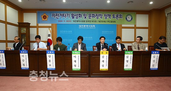 지구 온난화의 주범인 자동차 이용을 억제하고 탄소저감 실천을 위해 ‘자전거 타기'를 활성화해야 한다는 주장이 제기됐다. 대전시의회 김재경 의원 (부의장)은 30일 오후 의회 4층 대회의실에서 김성길 공주대학교 교수 및 각계 전문가를 참석한 가운데 ‘자전거타기 활성화 및 문화정책’을 위한 토론회를 개최했다.
