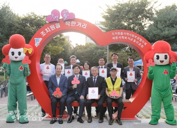조치원읍 지역사회보장협의체(공동위원장 이동환·김동진)와 침산리 상가번영회(회장 이기홍), 세종사회복지공동모금회(회장 홍영섭)는 27일 행복길 일원에서 ‘착한거리 선포식’을 개최했다고 밝혔다.