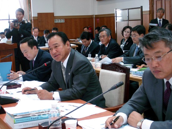 민주당 최규식 의원은(서울 강북 을) "그동안 몇차례에 걸쳐 행복도시에 도지사직 걸겠다 발언 한 적 있다“며 ”어제(18일) 공무원 연수 자리에서 이명박 대통령이 '정권에 도움이 안 될지라도 국가에 도움이 된다면 한때 오해를 받더라도 택해야 한다' 말했는데 지사는 어떻게 생각하냐"고 물었다.