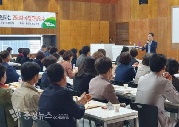 충남교육청(교육감 김지철)이 수업나눔에 대한 인식을 확산하게 위해 8일 한국문화연수원에서 교장(감) 62명을 대상으로 연수를 실시했다.