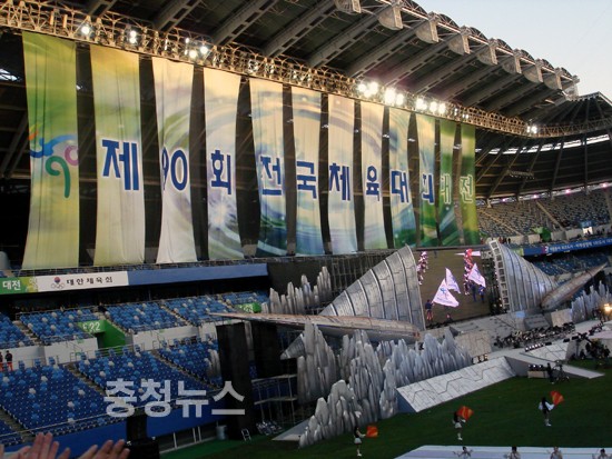 '마음을 하나로, 대전을 세계로!' 라는 슬로건 아래 7일간 환희와 열정 속에 펼쳐진 제90회 전국체육대회가 26일 폐회식을 끝으로 내년 경남 진주에서 만날 것을 기약하며 7일간의 대장정을 성공적으로 마쳤다.