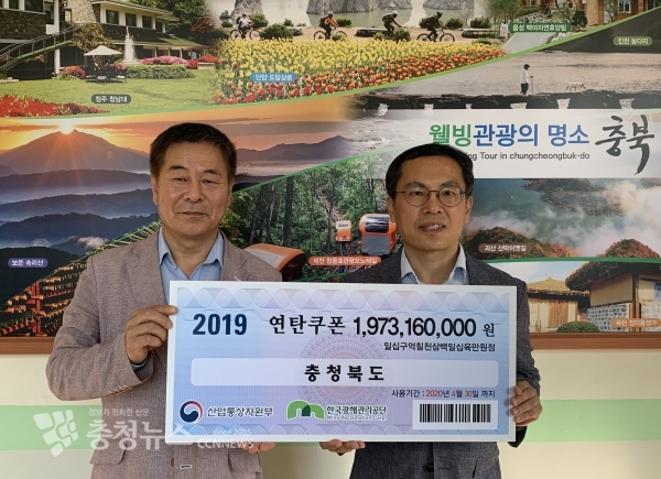남광수 광해관리공단 충청지사장(우), 충북도 연탄쿠폰 지원
