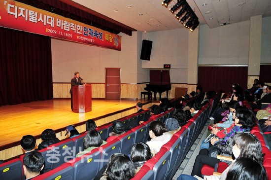 대전시 중구(구청장 이은권)는 18일 핵가족화 확산과 디지털시대를 맞아 청소년들이 올바르게 자라날 수 있도록 하기위해 한남대학교 김형태 총장을 초청해 ‘21세기 정상을 향한 자녀교육’이란 주제로 중구종합문화복지관에서 특강을 실시했다.