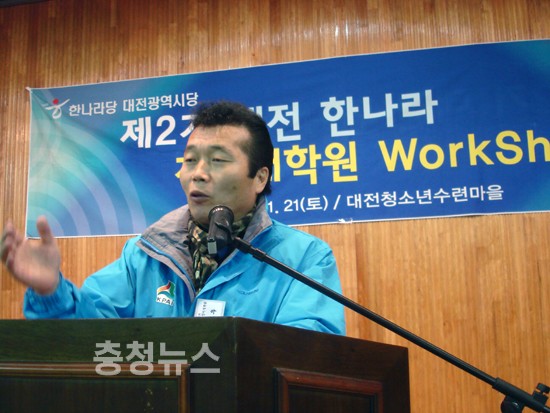 한나라당 대전시당(위원장 송병대)은 21일 오후 6시 부터 늦은밤 11시까지 중구 침산동 청소년수련원에서 제2기 정치대학원 워크숍을 열고 6개조별 분임 토론회와 래크레이션을 통해 내년 지방선거 승리를 위한 친목을 다졌다.