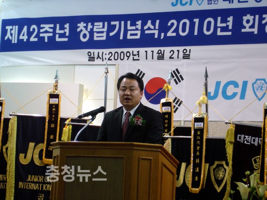 대전JCI 창립42주년 기념 행사및 회장 임원 이취임식 행사가 21일 저녁 유성 래젼드호텔에서 대전지구JCI 송완식 회장을 비롯한 송인석 차기지구회장을 비롯한 임원진들이 참석한 가운데 열렸다.