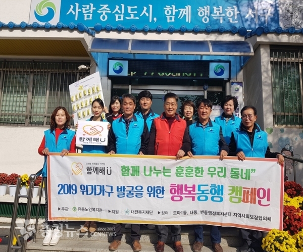 대전 서구 유등노인복지관과 변동 지역사회보장협의체는 21일(목) 변동 네거리에서 2019 위기가구 발굴을 위한 행복동행 캠페인을 진행했다.