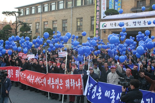 세종시 원안 사수 및 이완구 지사 사퇴 반대를 위한 이완구 지사 지지자들의 결의대회 열기가 뜨겁다.