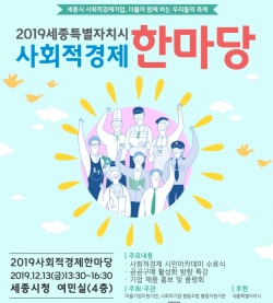 세종시 마을기업지원기관과 사회적기업·협동조합지원기관이 오는 13일 시청 여민실에서 사회적경제기업인과 시민이 함께하는 ‘2019년 사회적경제 한마당’ 행사를 개최한다.