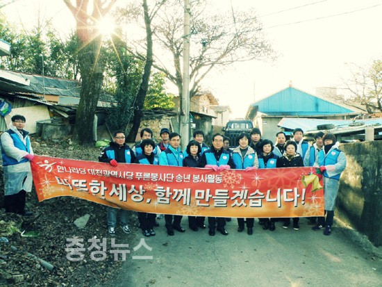 한나라당 대전시당 푸른 봉사단(단장 조은숙)과 당원협의회는 연말을 맞아 연탄(3500장), 쌀(20KG,100포), 라면, 전기장판등 생활에 직접적으로 필요한 물품을 (사)늘평안복지회에 기탁하고 약 2주간(10일~22일)에 걸쳐 송년봉사활동을 진행한다.