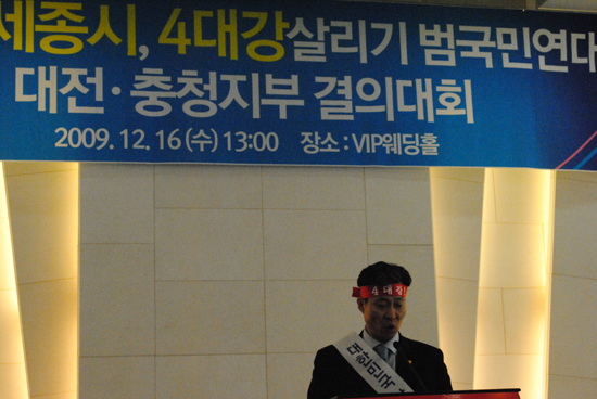 새로운 세종시, 4대강 살리기 범국민연대 대전· 충청지부 결의대회(대전.충청지부장 박인철 )은 16일 오후1시  둔산동 VIP웨딩홀 3층에서  500  여명이 참석한 가운데  대전충청지부 발족식 및 결의 대회를 가졌다.