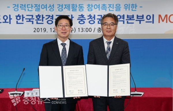 충남도가 경력단절 여성 취업 지원을 위해 한국환경공단 충청권지역본부와 손을 맞잡았다.