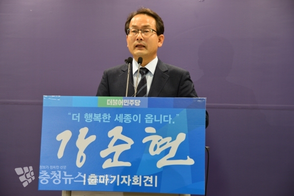 기자회견하는 강준현 세종시지역구 예비후보 / 충청뉴스 최형순 기자