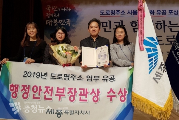 세종시는 12월 도로명주소 업무평가에서 우수기관으로 '행정안전부장관상 수상과 지적재조사 분야 최우수기관으로 선정돼 '국토교통부장관상'을 수상했다.