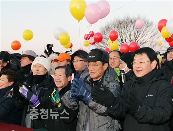 박 시장은 1일 오전 대덕구소재 계족산 정상에서 해맞이 모습을 보며 " 계족산 일출이 한해의 시작을 알리는 계족산 해가 참으로 이쁘게 떠올랐다"면서 " 대전 시민들의 건강 과 소망이 잘 이루어질 수 있도록 기원"했다.