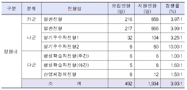 정원내 492명 모집에 1,934명 지원,