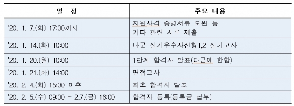 【한밭대 2020학년도 신입생 정시모집 향후 일정】