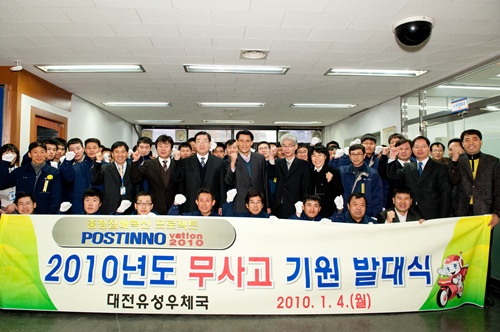 대전 유성우체국(국장 유천균)이 4일 집배실에서 충청체신청 변상기 우정사업국장이 참석한 가운데 '2010년 무사고 안전운행'을 위한 발대식을 가졌다.