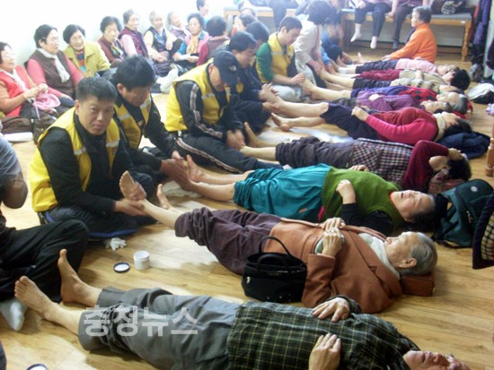 대전경찰청 제1치안수요 지구대인 둔산지구대(경감 박도수)에서는 위와 같은 행사를 제일 먼저 동참 노인복지관에서 무료급식 및 노인발마사지와 복지관 환경정리등 봉사활동을 하며 노인 및 장애인들을 직접 만나 그들로부터 어려움 점 을 의견 수렴하여 치안활동에 적극반영 할 예정이라 밝혔다