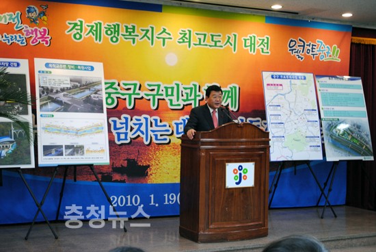 이 청장은 " 중구지역에서는 아쿠아월드 조성, 대사천 생태하천복원사업, 중촌 근린공원 조성사업, 국민체육센터 건립, 목척교 복원사업, 족보박물관 건립, 뿌리축제 등 대전의 대변혁을 이룰 대단위 사업이 한창"이라며 "구의 재정형편이 어려움을 감안, 진행중인 사업들이 원활히 추진될 수 있도록 재정적 지원 등 많은 관심과 협조 부탁"했다.