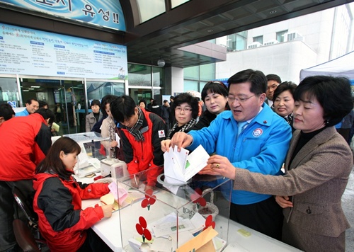 대전 유성구(구청장 진동규)가 20일 구청광장에서 주민과 공무원 등이 참여한 가운데 어려운 이웃에게 희망을 전달하기 위한 ‘희망 2010 나눔캠페인 순회모금’을 실시했다.