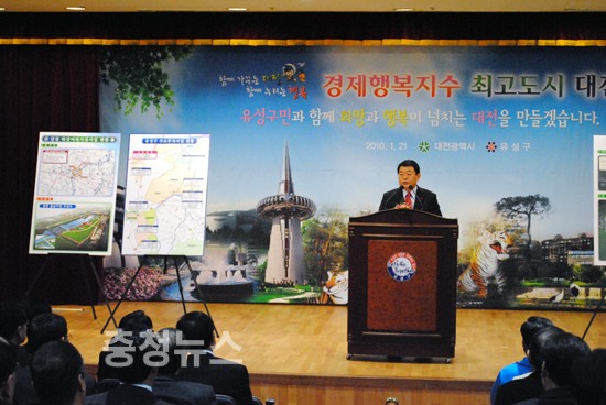 박성효 대전시장은 21일 오후 진동규 구청장, 설장수 구의회 의장을 비롯한 주민 300여명이 참석한 가운데 열린 2010년도 유성구 연두방문에서 올해 유성구 지역 투자계획과 함께 주민들의 건의를 듣고 해결방안을 제시했다.