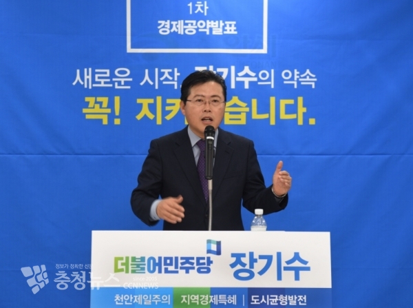 더불어민주당 장기수 천안시장선거 예비후보가 ‘천안제일시대’와 ‘지역경제 특혜’를 기반으로 한 경제공약을 발표했다.
