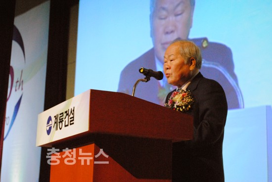 그러면서 오늘 행사는 40주년 기념식과 더불어 비전선포식을 겸하는 의미 있는 행사다. 그것이 바로 비전 2020이다. 지금까진 1년 단위의 목표를 여러분께 약속했었는데 앞으로 10년 후 2020년에 계룡건설이 지향하는 목표비전이 어디인가를 정해주는 것이다.